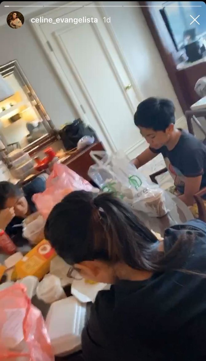Celine Evangelista bersama dengan keluarganya pun memutuskan untuk mengungsi ke hotel lantaran rumahnya yang kebanjiran.