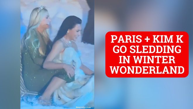 Kim Kardashian and Paris Hilton go sledding together in winter wonderland at Kardashian-Jenner Christmas Party - Marca