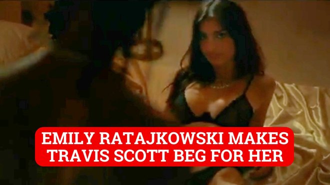 Emily Ratajkowski makes Travis Scott beg for her in sexy late night music video